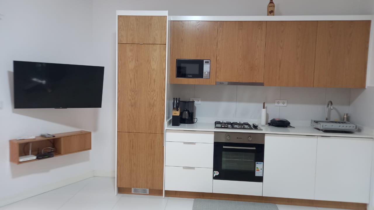 You’ll find all the essentials for a comfortable stay, including high-speed WiFi, a flat-screen TV for entertainment, and a washing machine for your convenience. The apartment also boasts a bathroom with hot water, ensuring you always feel at home, whether you’re waking up to a sunny day or unwinding in the evening.